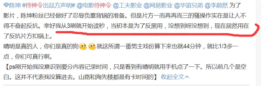 这是陈坤的粉丝三刷时做的表格,他本来是怕因为票房不好,到时片方把责任推到陈坤上用的。做梦也没想到片方来了这操作,粉丝立即把表格甩了出来。