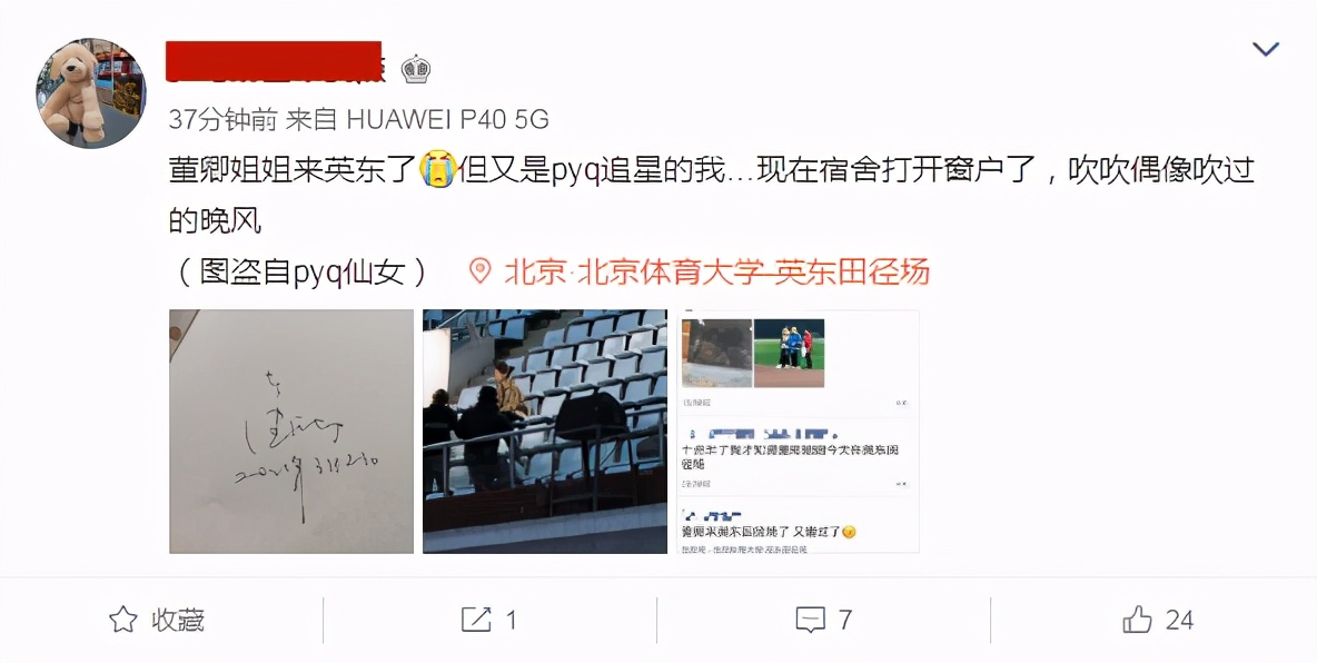 23日,董卿现身北京体育大学录制新节目,被很多同学偶遇,还有幸运的同学要到了董卿的亲笔签名。