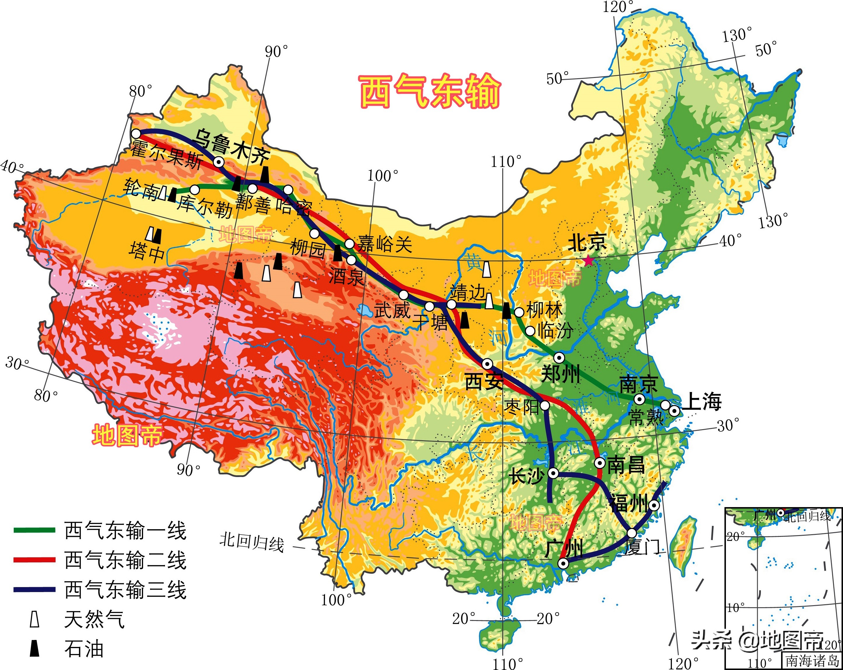 西气东输三线:哈萨克斯坦、霍尔果斯、乌鲁木齐、鄯善、哈密、柳园、酒泉、武威、干塘、西安、枣阳、长沙、厦门、福州、广州。