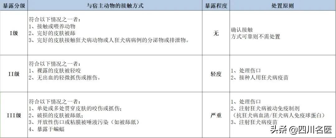 1、医学上对于狂犬病毒有一个暴露分级,不同的暴露分级,有哪些不同的处置方式呢?