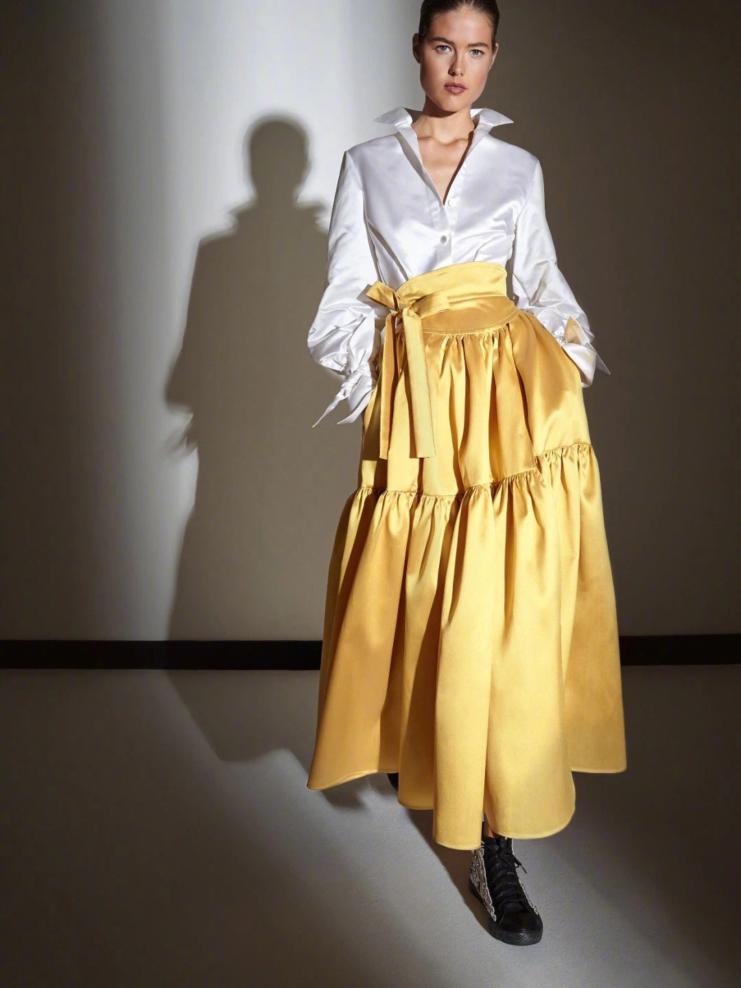 黑皮妹纸也不要担心说黄色是不是会更显肤色黑,完全不会,合理的搭配只会让你的肤色在黄色的映衬下更加的具有个人魅力,而白色与黄色的加持会让整体的造型多了一份层次感,时尚度也瞬间上涨。