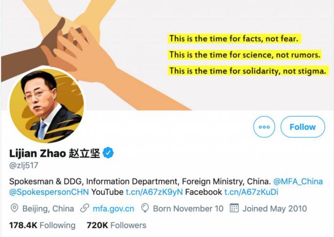 赵立坚还是中国外交部发言人华春莹推特账号的“头号粉丝”。在华春莹开通推特账号后,他是第一个关注的人,并转发推文表示:“这是中国第一个这样的推特账号。请转发,让更多的人知道。”而华春莹则以“未见其人,已闻其声”八个字形容赵立坚。用词接地气且精准,有理有据,金句频出,赵立坚以独创的“赵氏风格”,讲好中国故事,传递中国声音。