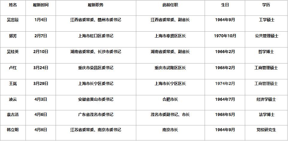察时局注意到,吴忠琼是8人中唯一具有工科背景的女官员。1月4日,吴忠琼被任命为赣州市委书记。