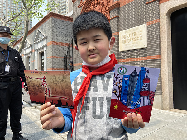 修缮完毕的中共一大会址尚未重新开放,却无法阻挡游客们前往打卡的热情。4月13日,记者在中共一大会址门口看到,站在石库门前留影的人络绎不绝。长宁区绿苑小学二年级学生朱逸弦就是其中一位,他佩戴着红领巾,举着印有英雄字样的明信片,让妈妈为他拍照。“这里是党的诞生地,建党百年,所以带小朋友过来看看,历史不能忘记。”妈妈徐海英说,他们前一站还去了四行仓库。
