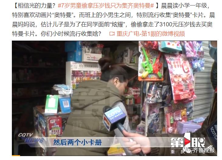 重庆的赵先生清理房间时偶然发现,读小学的儿子收藏了满满一桌子的“奥特曼卡片”,全部用一本本小册子装着,仔细询问才知道,孩子是偷偷用家里的钱购买了这些卡片,不仅用了一万元的红包钱,还偷偷在妈妈包里拿钱。
