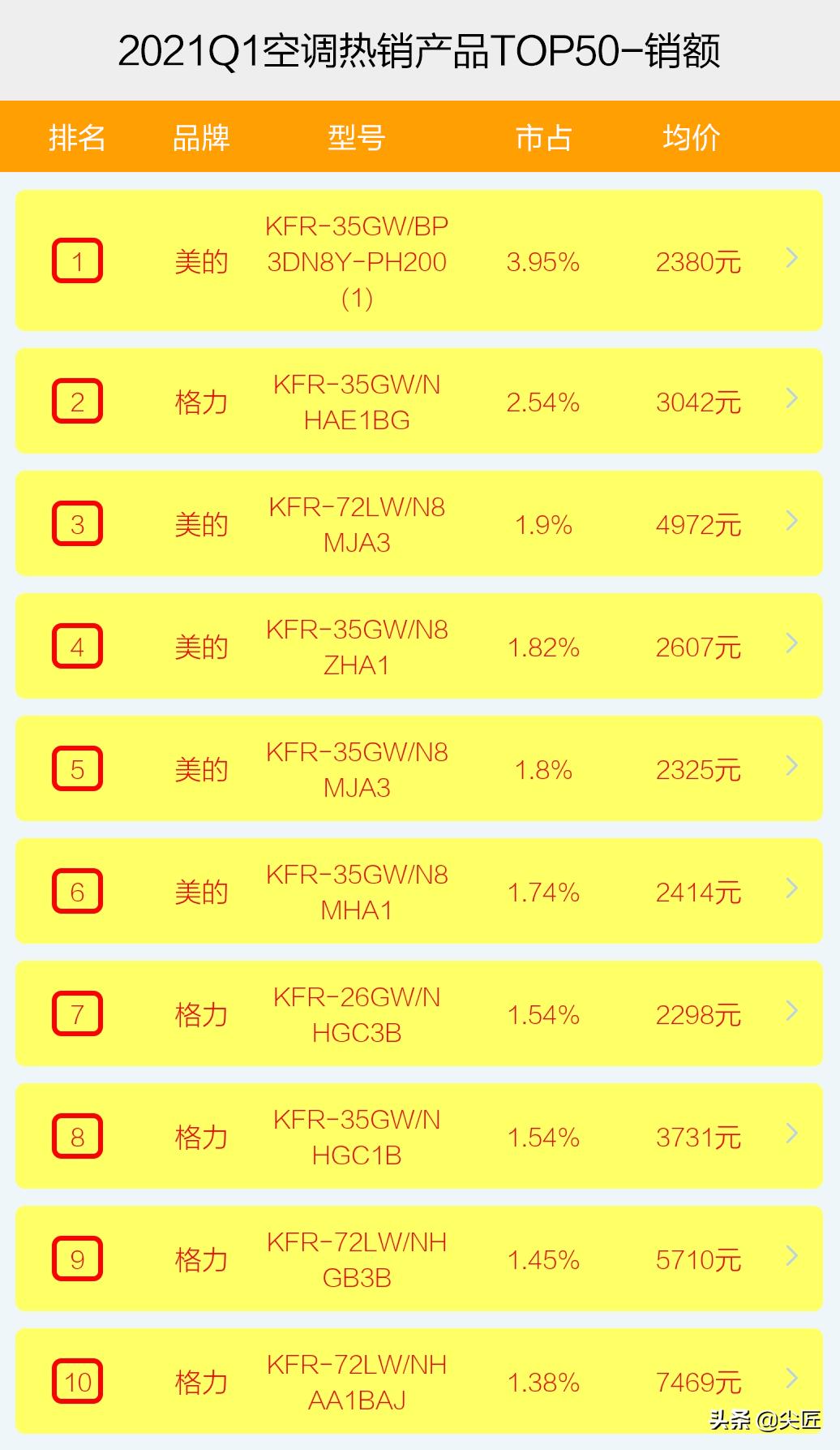干货来了,直接上图!5大电商大厂2021年一季度,空调十大品牌销售额排行榜、空调热销产品TOP50榜单,一一揭晓!