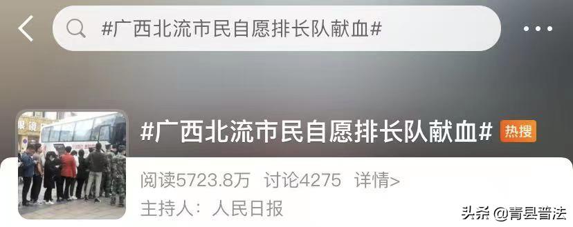 北流市卫生健康局的工作人员称,已在北流市步行街西门口设置献血车。当天下午,“广西北流市民自愿排长队献血”的一幕,一度冲上热搜。
