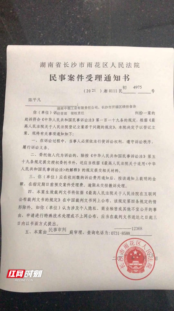 今天,雨花区法院已经受理了这起案件。红网时刻记者将对此案继续予以关注。
