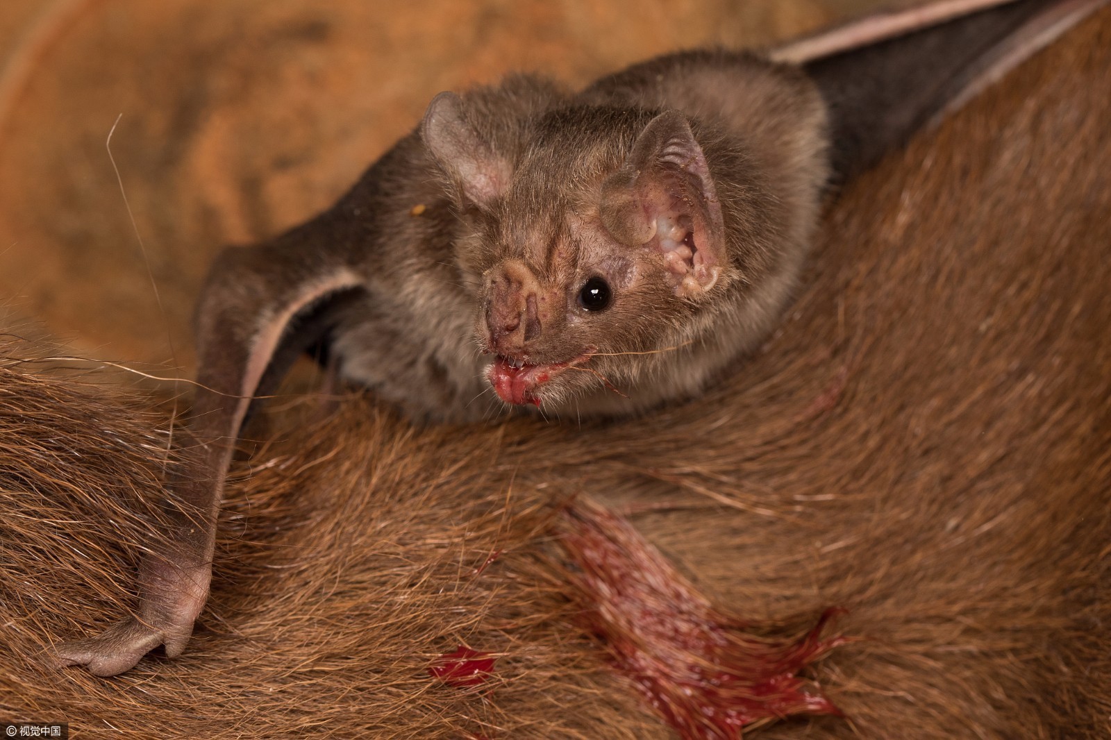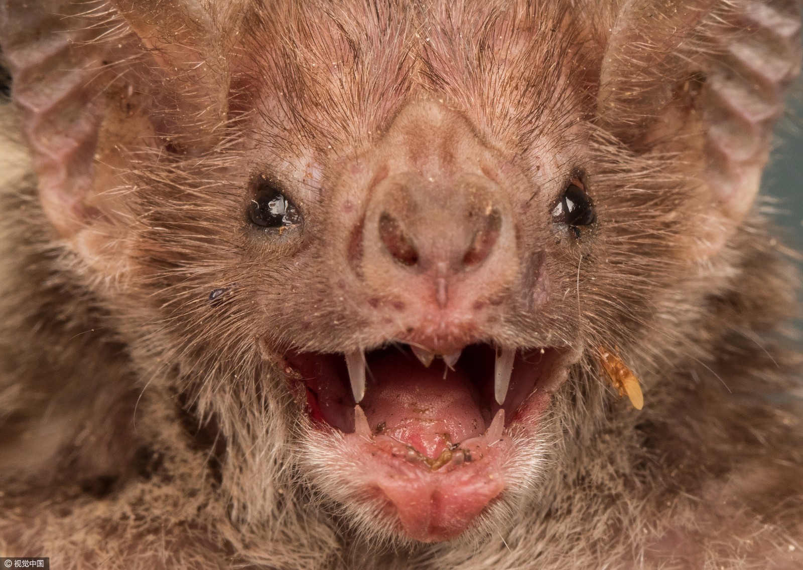 当地时间2017年3月,墨西哥普埃布拉,一种吸血蝙蝠,它们以吸食动物血液为生,通常在夜幕降临时偷偷靠近熟睡的猎物,为了捕食猎物进化出了具有深凹槽的下唇,扁叶形的鼻子,每一边翅膀上都有一只高度发达的爪子用于爬在猎物身上来进食。