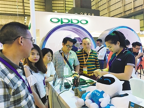 加博会国际智能手机及移动终端产业展聚集了产业链上下游的实力企业,包括OPPO、vivo、金立、劲胜精密等。本报记者 庞彩霞摄