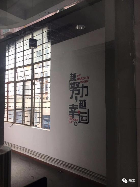 指路人公司车陂教育基地已经关闭,墙上留有"越努力越幸运"的贴纸