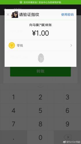在使用微信指纹支付之前需录入指纹信息,支付的过程当中只需将手指放置在指纹识别区域即可,使用便利体验极佳。据小米公司MIUI运营经理@RanGer风起表示:微信转账体验后最深的两点∶指纹识别快!支付快!整个流程一气呵成!