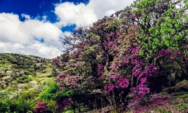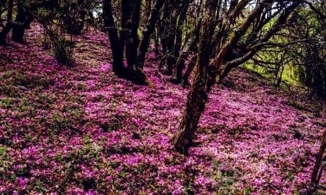十万亩上百年乃至上千年的野杜鹃花在这里疯长着,绚烂着,刷新着你对于花海所有的想象。