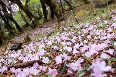 “落红不是无情物,化作春泥更护花”是这里的极致写照。花瓣满地,在潮湿的地上,没有枯萎的迹象,鲜活如初,似乎它们在大地上又一次盛开。