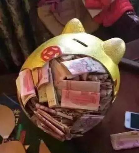 【存钱罐都被撑爆了,明儿就让儿子拿去买糖吃】