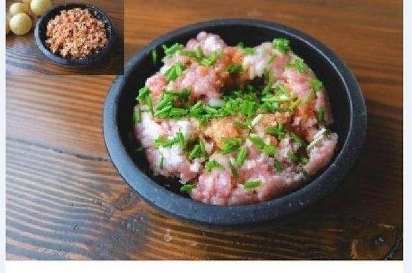 第一步:将猪肉糜加生抽,老抽,俩就,葱花,姜,盐,油,搅拌均匀,喜欢香菇的可以加一点香菇,做成肉馅