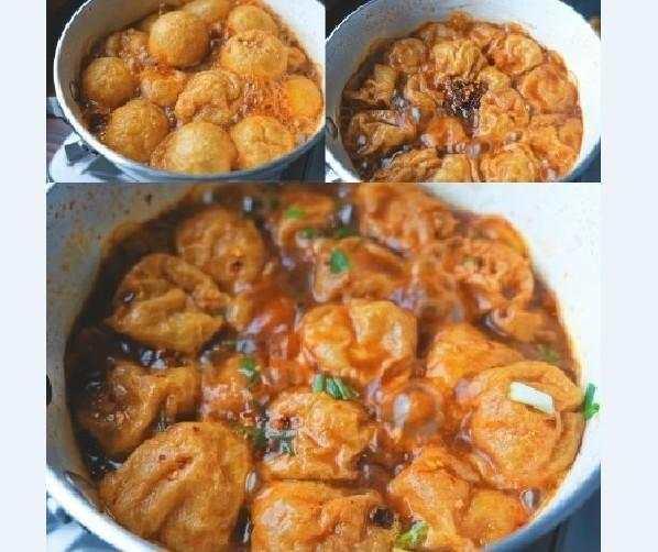 第三步:加热油锅,加入适量水,加适量老抽,搅拌均匀,把油面筋放入锅中中火煮15分钟,小火慢慢炖煮