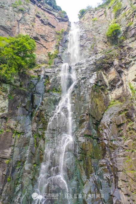 站在仰止桥上,抬头仰望瀑布,只见水流自千丈岩顶端的岩石倾泻,犹如银河之水自天上奔腾而来,喷薄的状态又像雪山崩塌,经阳光折射,五彩纷呈,蔚为壮观。让人不得不想起曾巩的那句:"玉虬垂处雪花翻,四季雷声六月寒。"