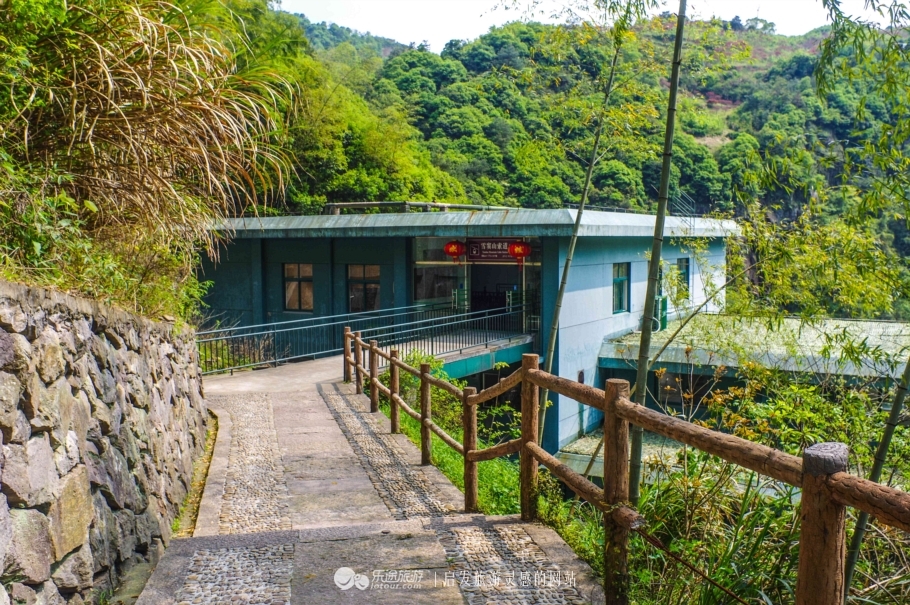 游览过三隐潭以后,搭乘景区的幸福快车,约一二十分钟就到了千丈岩。千丈岩从宋代以来就成为了到雪窦山必游的风景名胜,王安石、曾巩等人都曾留下赞扬千丈岩的诗词句子,而众人皆知的"放下屠刀立地成佛"这一典故也是出于这里。