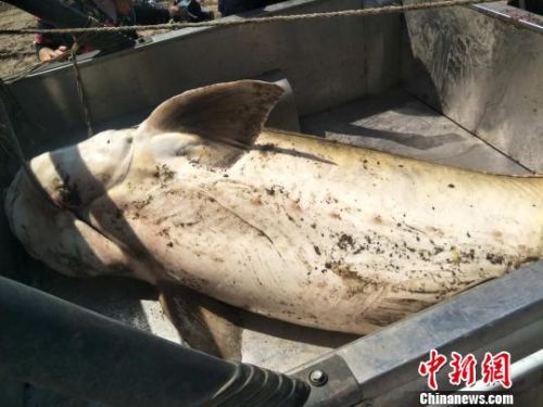 黑龙江抚远渔民捕获一条450重罕见鲟鳇鱼 刘宇航 摄