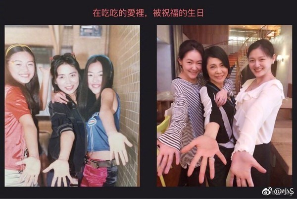 小S在13日晒出ASOS青涩旧照,当时她亲密紧勾柴智屏的脖子,三人一起对镜头伸出手掌,笑容灿烂,显得特别青春洋溢。事隔多年,她跟大S为柴智屏提前庆祝生日,也特地重演当初拍照姿势,并不忘自荐:“最支持吃吃的爱的流星花园制作人和女主角,我愿接下第二集!”