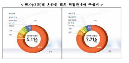一个更典型的例子是,就在几天前,韩国政府公布的一组最新数据显示:今年第一季度韩国收到的所有来自海外的网购订单中,中国以80.6%的占比和高达6218亿韩元的绝对优势占据第一位,而排名第二的美国仅占5.9%,为458亿韩元。。。