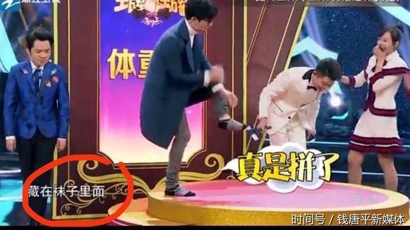 你看在《王牌对王牌》薛之谦为了玩游戏现场脱增高鞋垫,耿直的他直接在袜子里面塞,把大家都逗乐了。