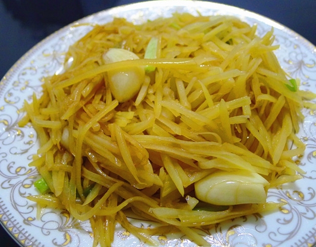 醋溜土豆丝,放了醋做出来还是比较开胃的,加点小蒜和大蒜子一起做出来很香。