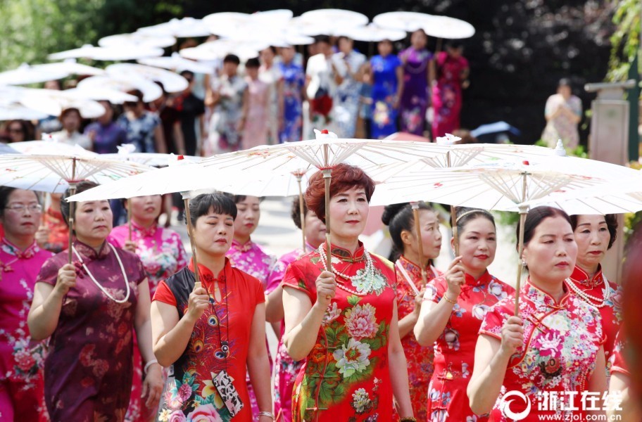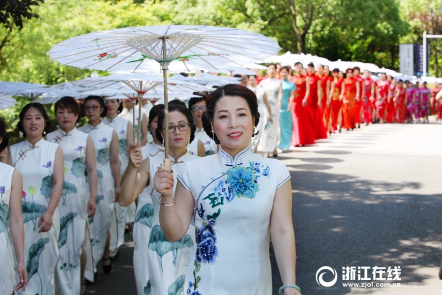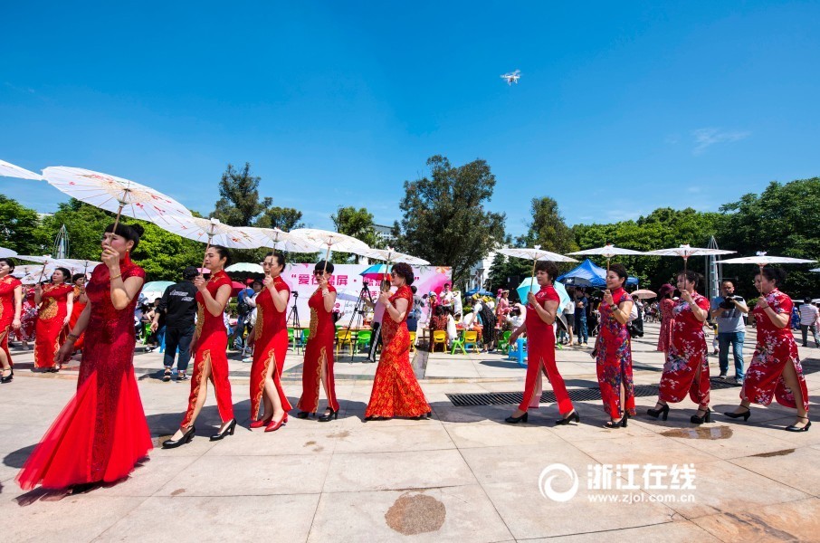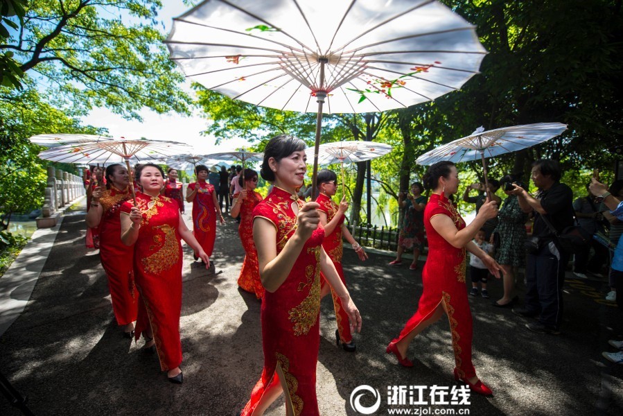5月13日,温岭锦屏公园,118名母亲穿着各色旗袍,绕公园一圈,展示女性之美。当天,由当地慈善义工组织的感恩母亲节活动,邀请当地118名母亲,以穿旗袍走秀的方式,共同庆祝属于自己的节日。活动现场,还有小朋友给母亲做花环,现场充满了浓浓的爱意。