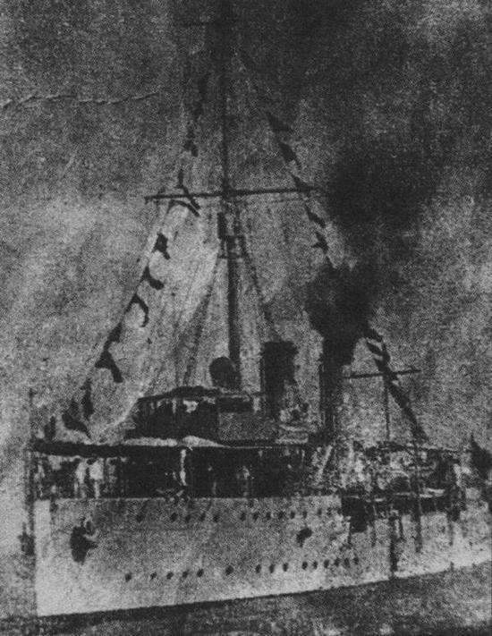 武汉会战中,中国海军中山舰被日军击沉,舰长萨师俊及部分官兵壮烈殉国。