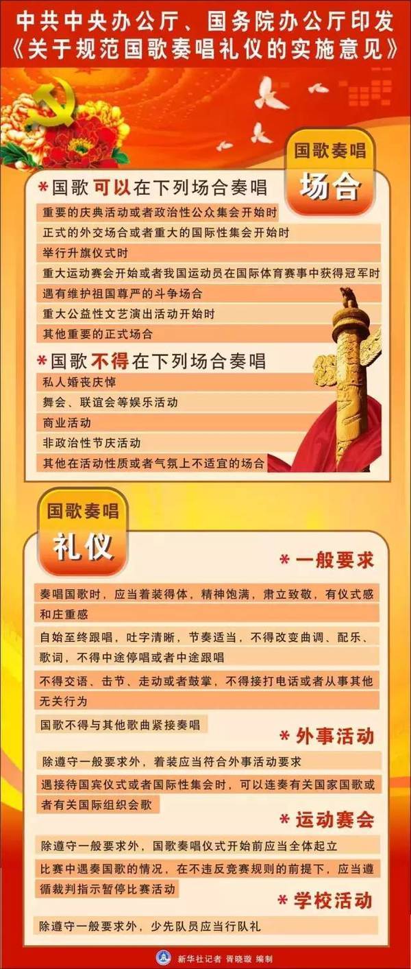目前,只有国务院出台了《关于规范国歌奏唱礼仪的实施意见》,对于演奏场合和礼仪进行了粗略规定,既不能详尽地应对一些现实问题,在法律位阶上也属于规范性文件,意义有限。