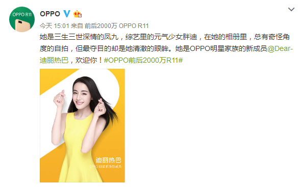 ◆迪丽热巴很火,代言OPPO R11