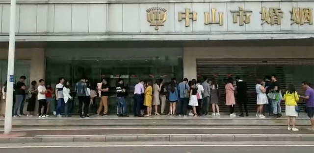 2017年5月20日,广东省中山市婚姻登记中心,一大早,这里已经被前来登记的准新人包围。