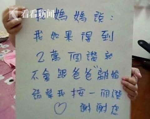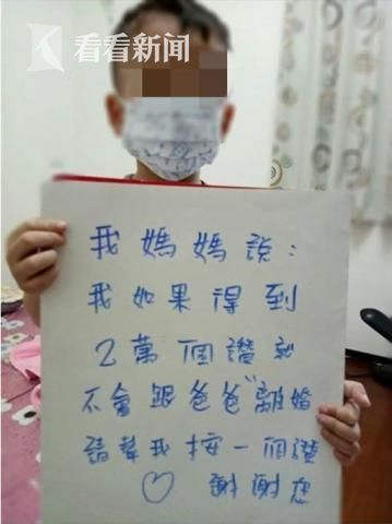 从照片可见,一名男童拿着一块纸板,上面写有:“我妈妈说:我如果得到2万个赞,就不会跟爸爸离婚,请帮我按一个赞。谢谢您。”