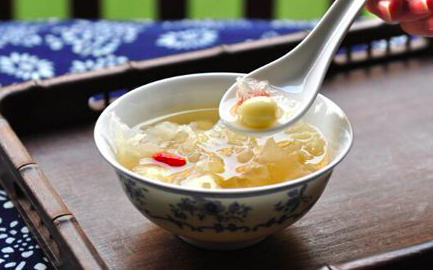 做法:银耳用温水泡开,和人参一起加清水煎煮,待银耳熟烂后加入少许冰糖即成。