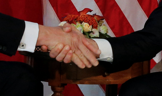 会谈之后两个人谈了神马媒体也不关注了,纷纷描写起两个人长达19秒的尴尬握手。