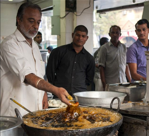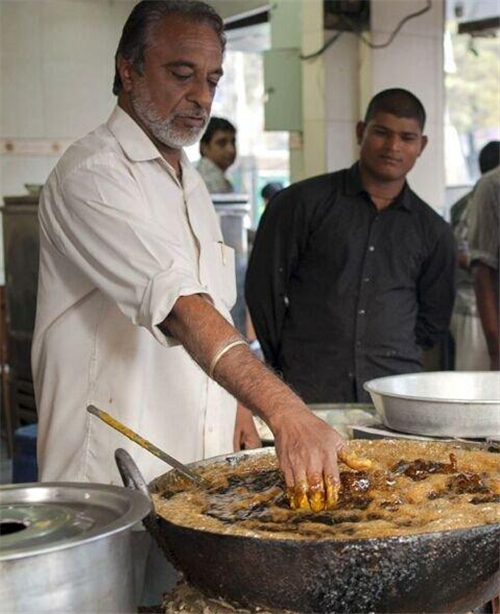 在印度旧德里就有一位开了挂的印度厨师,他可以在200多度的滚油里徒手炸鱼肉,而且这种徒手炸鱼肉一炸就是20年。