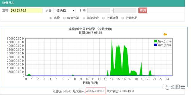 途隆云同步也监测到,从2017年5月28日 8:14:10, 途隆云高防BGP数据中心遭受了黑客组织激烈的定向攻击,本次攻击一直持续到16:31:51,历时8小时,攻击流量达到650G,攻击强度达到每秒3亿次连接,本次攻击未对途隆云安全业务造成任何影响。
