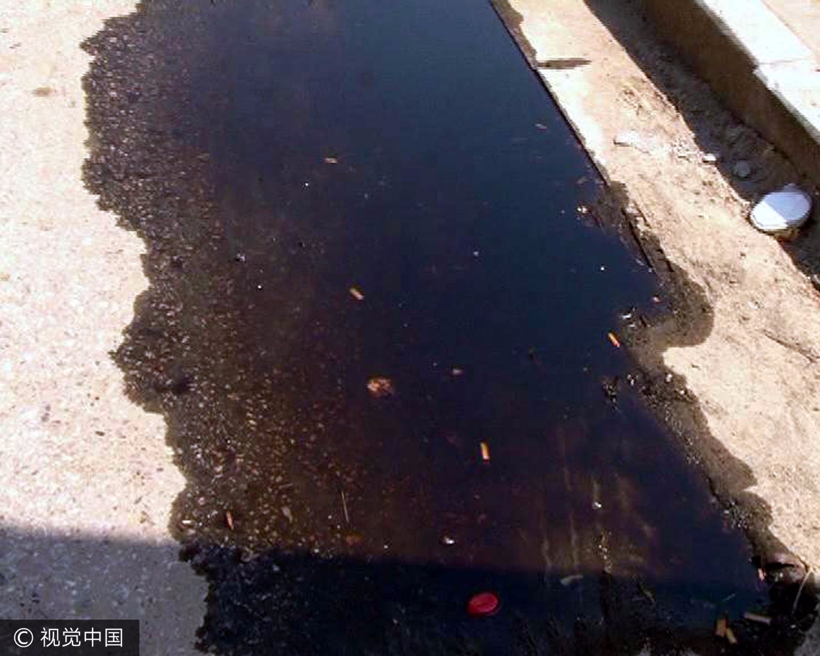 200米的路面全是泄露的机油。