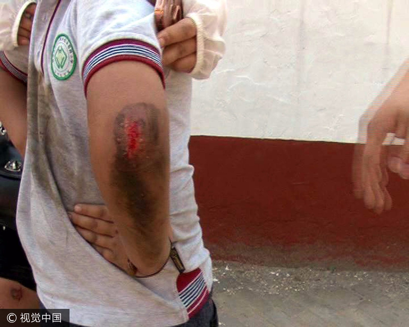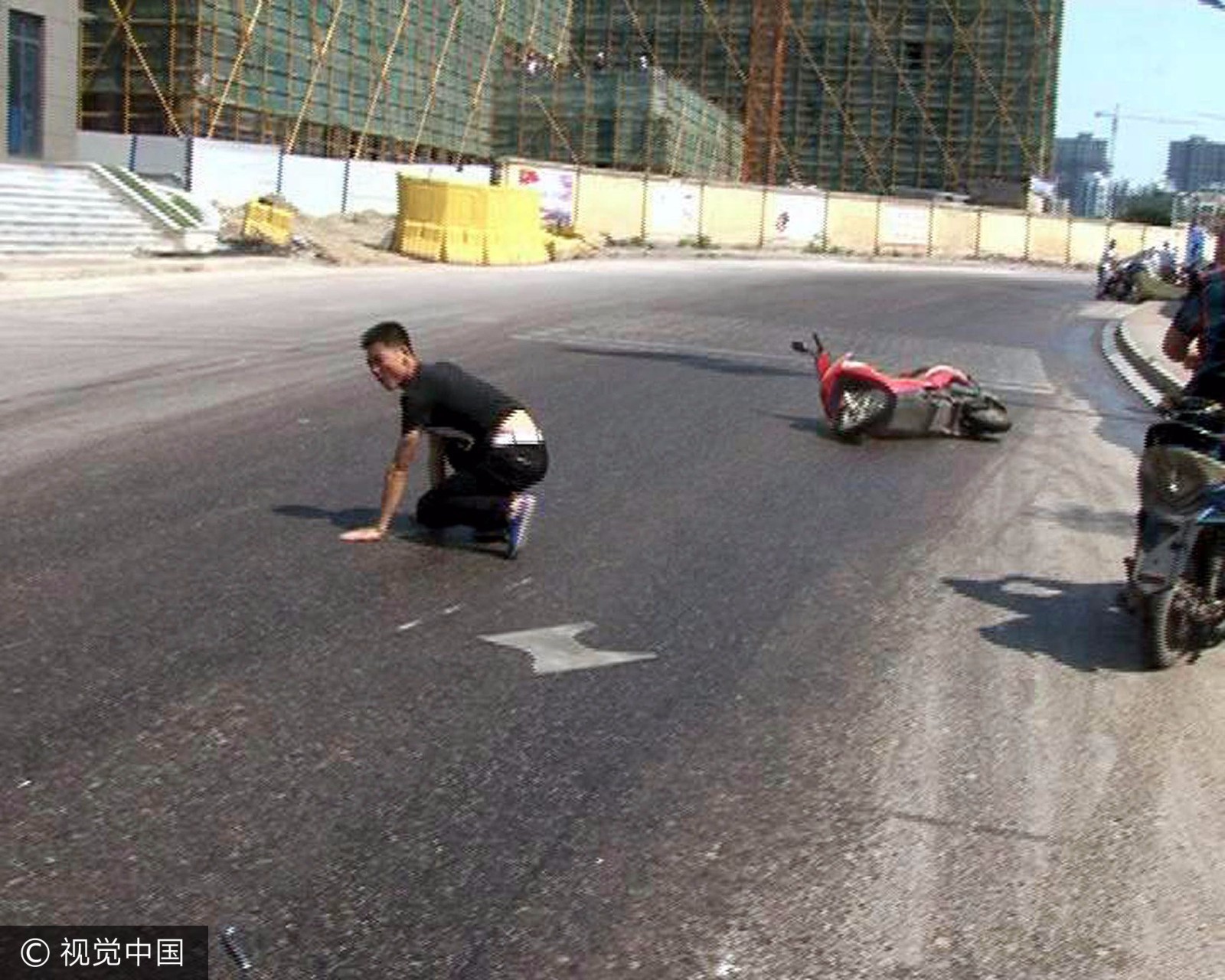摔伤的骑车市民。