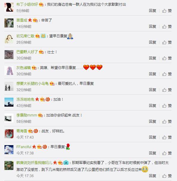 不久前,中队领导瞒着张豪将他的家人接到部队团聚,看着张豪尚未痊愈的双腿,他的母亲潸然泪下,懂事的张豪笑着说:"妈妈不要担心!医院安排了最好的专家为我治疗,我很快就能康复了。"