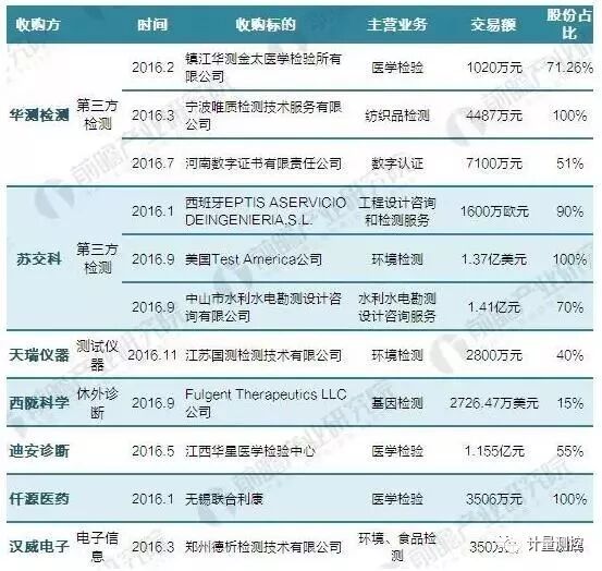 从并购标的所属国来看,跨境收购是并购热词,苏交科分别收购美国、西班牙的环境检测、工程检测业务;西陇科学也布局海外基因检测领域。未来,着眼海外、走出国门成为第三方检测机构的“新常态”,通过并购整合“走出去”实现资源整合、缩短与国际先进水平的差距。
