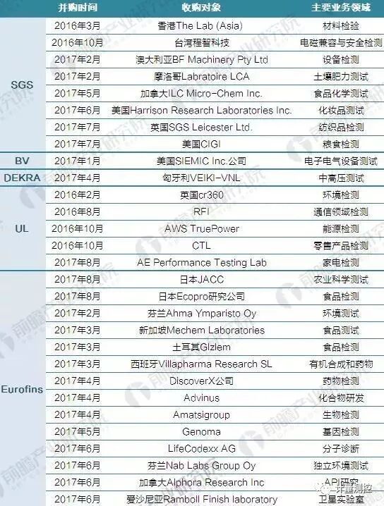 进入2017年,外资检测机构动作不断,SGS集团在2017年上半年便完成了4项收购。这些收购扩大了集团在农业、食品和生活,消费者和零售,工业领域的服务和足迹,这些收购为集团2017年上半年增加了400万瑞士法郎的收入和100万瑞士法郎的营业收入。