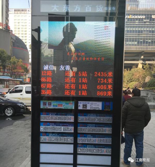 最近无锡不少公交车站的站牌焕然一新。明晰的电子大屏循环播放无锡宣传片,上面几行提供实时车辆到站预告信息。从市交通场站建立管理无限公司理解到,这是往年投运的首批新型公交电子站牌,也是无锡第三代公交电子站牌,不只愈加美观大气,还新增了给交通卡自助充值的功用。新型公交电子牌高约2.3米、宽约1.3米,好像一个缩小版的黑色手机,相比一旁传统公交站牌的尺寸大了一倍左右。