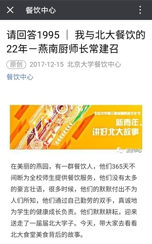 营建明朗网络空间是以后互联网管理的次要目的,对高校平安波动与开展建立具有积极意义,是网络思想政治教育任务获得实效的重要打破口。党的十九大就“牢牢掌握认识形状任务指导权”部署提出“增强互联网内容建立”,校党委书记郝平在传达学习党的十九大肉体会议上详细指出要“调动师生参与的积极性,加强网络宣传的实效性和影响力”。为此,以“新青年,讲好北大故事”为主题的第三届校园网络文明节特别设立了新媒体运营展选单元,将运营效果归入学校评价体系,在一致的主题框架内,以竞赛方式,鼓舞不同类型微信大众号加大优质内容供应,并完成更普遍传达,努力在新年的特殊时点完成网络正能量“大独唱”。