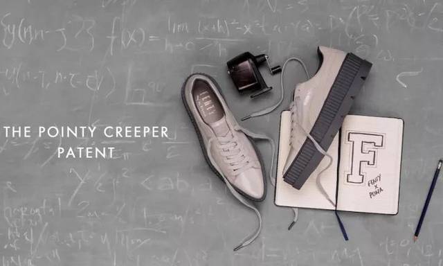 刚刚出售 2017 秋冬系列的 FENTY PUMA by Rihanna,日前无预警带来一双全新外型的 Creeper。超厚底设计配合全新尖头设计,并运用漆皮材质让整双鞋款拥有了全新古装感。该鞋款将优先出售米灰色与黑色两款,定价为 190 美元(约合人民币 1250 元)。