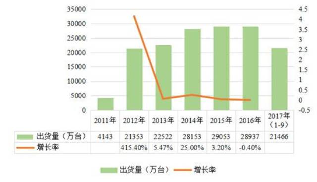 图表 3 2011-2017年9月中国除湿机出货状况统计