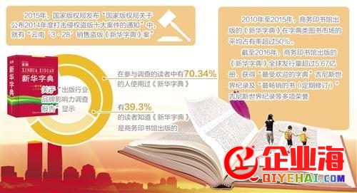近年来,市面上呈现了冠以“新华字典”字样的多种版本的图书。其实,早在1999年,有关部门就制定了对打击侵权盗版等守法活动的措施,指出“《新华字典》等是商务印书馆出版的重点工具书,这些图书在汉言语普及与研讨,以及言语教学等方面发扬了重要作用,深受广阔读者喜欢”。2015年,国度版权局发布“国度版权局关于发布2014年度打击侵权盗版十大案件的告诉”中,就有“云南‘3䞘’销售盗版《新华字典》案”。