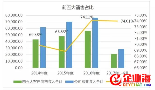 《京达财经》质疑天奥电子过度依赖大客户,关联买卖丛生。招 股书显示公司次要产品的销售客户绝对集中,次要为国际军工研讨院以及通讯设备制造商。2014年度、2015年度、2016年度和2017年1-6月,公 司前五名客户(以同一实践控制人兼并口径计算后排序得出)的销售支出算计辨别为43,268.24万元、48,402.52万元、56,423.80万元 和21,284.08万元,辨别占同期公司营业支出的69.88%、68.83%和74.11% 和74.01% 。