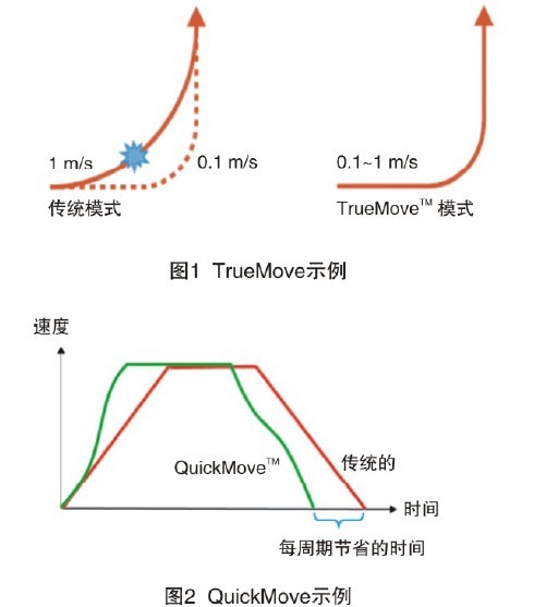 如图1所示,传统机器人在低速状况下实践途径与编程途径相吻合,但是在高速状况下做转弯运动时,实践途径就会偏离编程途径。基于初级前馈伺服控制技术的True Move极大的提升了运动控制精度,处理了机器人在高速状况下实践运动途径偏离编程途径的成绩,真正完成了所编即所得。